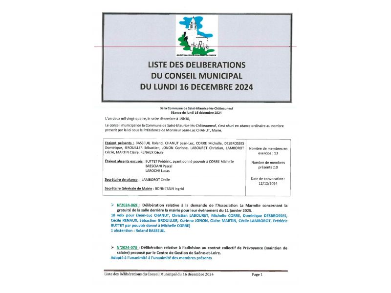 Vous êtes ici : > La Mairie > Les réunions du conseil municipal > Les comptes-rendus de l'année 2024